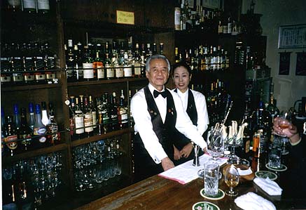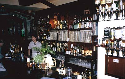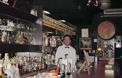 - カクテルといえば続人間と言うほど、はやっているお店で、行って満員で入れないことの方が多い、東京で言うと銀座の「クール」のようなお店でしょうか。 ウイスキーとカクテルが程良い品揃えで常備されており、たいていの物は飲むことが出来ます。 昔ながらの「バーテンダー」を絵で描いたようなマスターと、穏やかなママさんのコンビはとても居心地のいい雰囲気を醸し出しています。