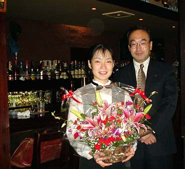 【まきさん、bar kodama最後の日に、お花を持って駆けつけました】