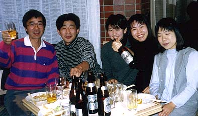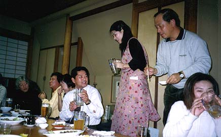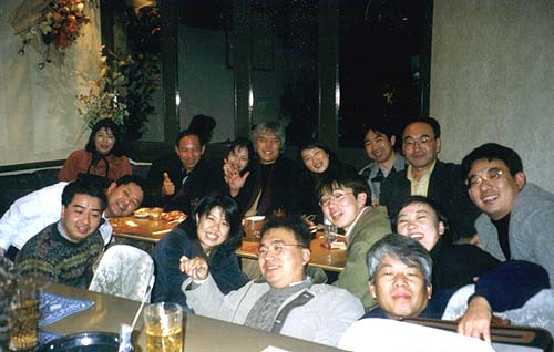 ![]() 栗田先生の歓迎会のはずが、ごく普通の宴会にシフトしております。 先生は、奥の方で地味に飲んでらっしゃいます。 |