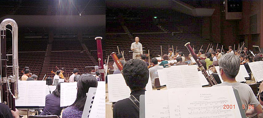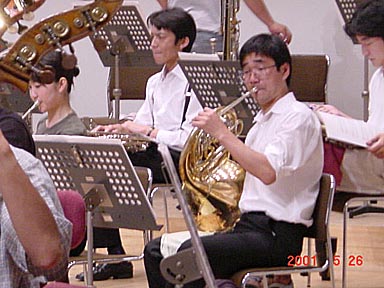 2日の夜に行われた、リヒャルトシュトラウスのホルン協奏曲のリハーサル風景。 山岸先生、2時間吹きっぱなしでご苦労様でした。 |
