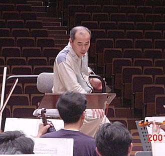 | 絶叫中のコンマス。 誰も聴いてないようです。 |