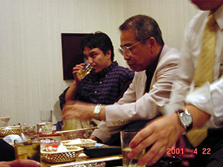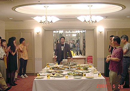 いきなり、本番後のレセプションになりました。 いよいよ完敗です。 (字が違うて、乾杯!) |