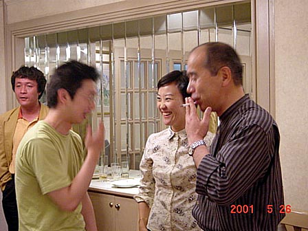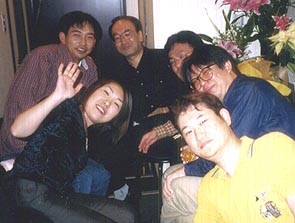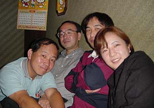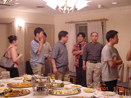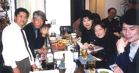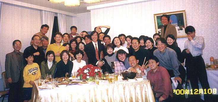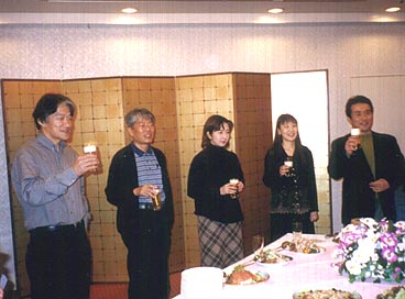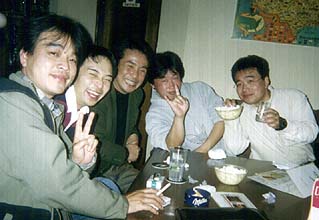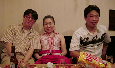 この日の歓迎会では、参加人数が予定 をオーバーし、この3人はし、隣部屋 まで侵入しました。 |
