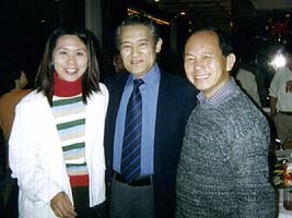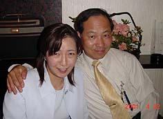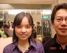 なんと、当日蝶ネクタイを忘れた武田に、 原田氏が私の名刺をボールペンで黒く 塗って、輪ゴムで止めた即席蝶ネクを 作ってくれました。 でも、花の女王が笑ってます。 |