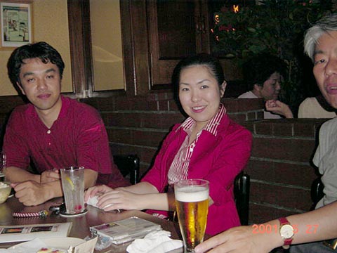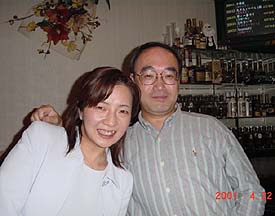 | ここは、3次会のTIME。 写真写りの抜群にいい美紀ちゃんと、ほとんど死にかけている三村氏と、今回は懺悔する必要がないのに、顔が半分の植村氏です。 |