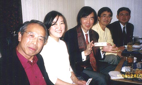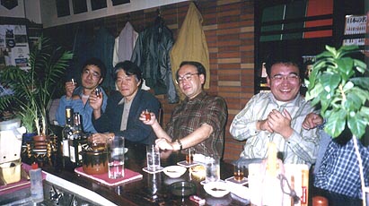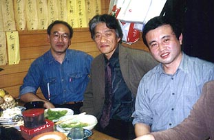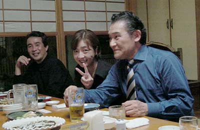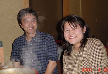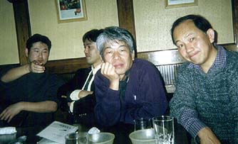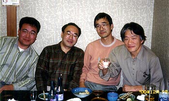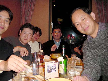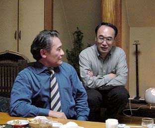 | ご苦労様の慰労会は、ご存知「しもきた」です。 松阪牛のヒレと、タケノコ焼き、それに大吟醸の日本酒に舌鼓を打ちました。 今回は、山岸先生と一緒に、東京から千代田フィルの飛永さんも一緒に来てくれました。トビさんは、しもきたは2回目です。 |