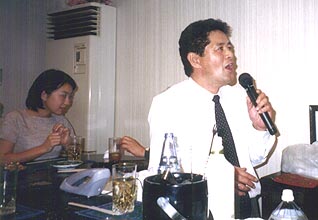 平成13年度団員総会の様子です。 議長は、川久保氏。 白熱した議論で、予定時間を大幅にオーバーしました。 |