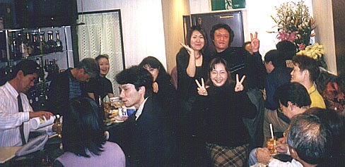 | 会場は、大分盛り上がってきております。 でも、バーテンの二人がつまんなそう。 | ![]() |