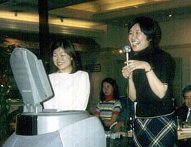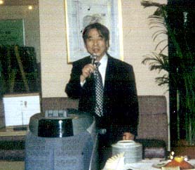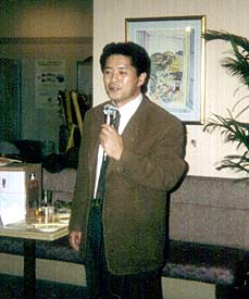 きれいな司会のお姉さんの質問に、 はにかみながら応える、リーダーの 原田氏です。 |
