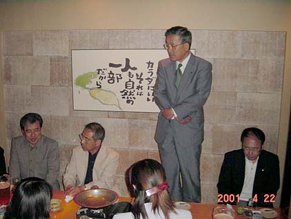 2001年4月22日、団員総会と事務局長歓送迎会の写真です