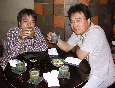 おっと、もう二次会だぁ。 今回は、TUTTIのパオの中です。 こっちは若者グループね。 境さん、ぎりぎり若者グループに入れてあげよう。 |