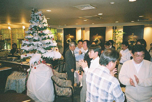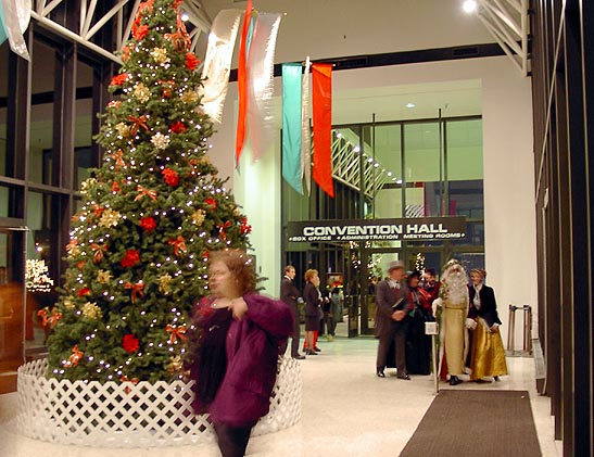 大きなクリスマスツリーの飾り付けと、仮装の方々の入場のようです。 |