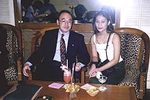 バンコクでは、犬がこのような格好で、ホテルの玄関先や歩道上に良く寝ています。初めは、死んでるのかと思いましたが、これがバンコクスタイルのようです。 国によって人間だけで無く、犬も風習があるのだと驚きました。 中国では、犬は食用として見られているため、ほとんど街中を歩き回っているのを見かけませんでしたが、バンコクの犬は幸せのようです。 ![]() タイも、美人の多いところのようです。特に北部のチェンマイあたりに色白の美人が多いそうです。オリエンタルホテル、バンブーバーにて。 ![]() 左は、バンコクのシャングリラホテルのアンジェリーニというバーで飲んだ、「バンコックバイナイト」というカクテルです。 味はともかく、カクテルグラスに注目! 顔よりでかい。右は、フィリピンのウエスティンホテルの、有名な「シェテ・ピカドス」というディスコバーで頼んだ、チーズバーカーと、シングルモルトのラガヴァリン。おいしそうでしょう。 ![]() フィリピン、マニラの夕日は、世界有数に美しいと言われているそうです。 ホテルの庭から眺める日没の夕日と、日没後の空と海の色は、一秒ごとに変わっていくようで非常にロマンチック。 一時間以上眺めていましたが、飽きることはありません。 周りの、恋人同士がうらやましかった。![]() ![]() フィリピンも、美人の多い所ですねぇ。 左は、ウェスティンホテルの、シェテ・ピカドスにて。 右は、丁度ホテルで開催されていた、ハイスクールのバレンタインパーティー会場に向かう、盛装の男女生徒たち。 男子生徒は、貧弱なのばかりでしたが、女子生徒は、女優級がいっぱい。 今回の出張では、ちゃんと仕事もしてましたので、念のため。 |
