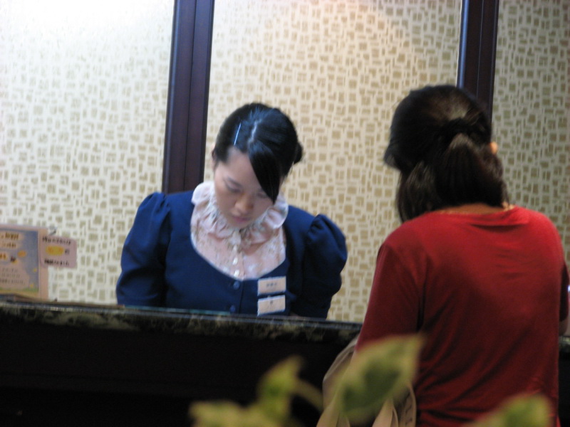 メイドさん、いや違う、ホテルの従業員も、レトロ風制服。