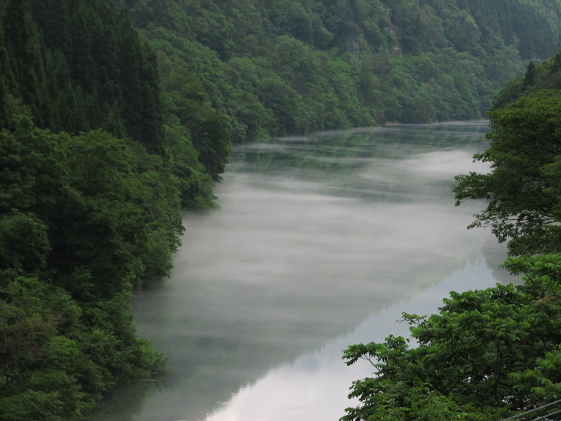 下の湖の湖面に浮かぶ、雲?
