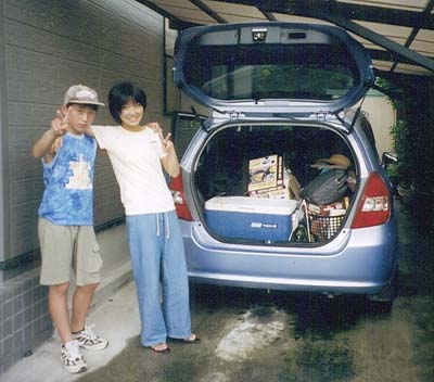 今回、私の愛車シルビアでは、テント等キャンプ用品はとても積むことが出来ないので、家内のフィットで行くことになりました。 すさまじい収納力で、まだまだ詰めそうです。 今回、高校の合宿でキャンプに行けない絵里香は、お見送りです。 |