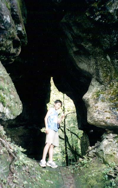 引き返して、正しい道を登っていくと、巨大な石の洞窟を抜けていきます。 | |