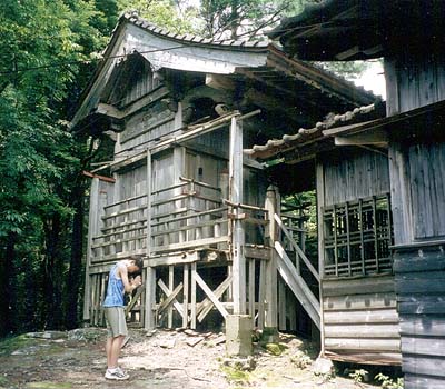 | 千と千尋の神隠しに出てきそうな、木で出来た階段梯子を登っていきます。 | ![]() |