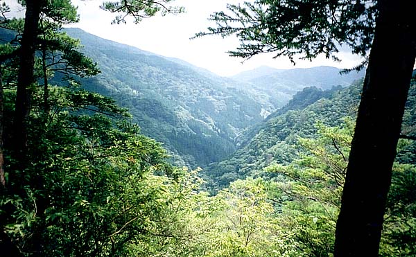 ![]() 山頂からの眺めは、素晴らしかった。 谷の合間に、わずかに川が見えます。 あそこから、ずいぶん登ってきたのだと、感嘆! |