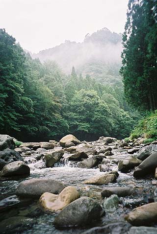 | 朝のクルソン渓谷。 あいにく雨が時折降る天気でしたが、雨など気にしないくらい、楽しいキャンプでした。 でも、忘れ物が多く、(グランドマット・いす・防寒衣料・蚊取り線香)ちょっと不便をしましたが、これもアウトドアの醍醐味か?? |