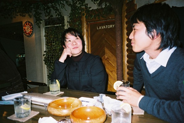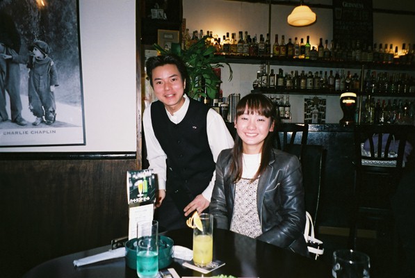 | おっと、もう二次会ですが、場所はやっぱり「ヘミングス」でした。 おっ、美男美女のツーショットです。 | ||