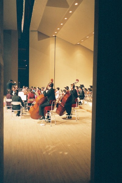 | これは、本番中のバッハの室内楽曲の演奏風景。 なかなか本番中の演奏を撮ることは出来ませんが、舞台袖が大きく開いていたので、Get! |