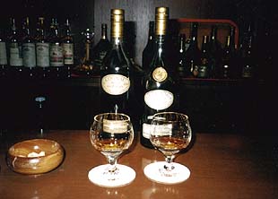 C右は、この日飲ませてもらったブランデーで、年数の違う2種類の比較テイスティング。