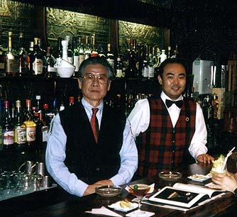 中村さんは、書店に行けばどこにでも置いてある「カクテル・ポケット図鑑」の著者で、有名なカクテル「マルルー」の創作者でもあります。 当日店に行くと、ちゃんと席も用意していただいており、おいしいカクテルやスコッチをたくさん出していただきました。 このバーは、特にトロピカル系のオリジナルをたくさん作っておられ、女性も安心して楽しめます。 事実お店に入ったとき、若い女性2人連れがここでカクテルを楽しんでいました。 ここ絵里香のチーフバーテンダーは、岸久さんです。 テレビにも登場する売れっ子バーテンダーで、コンクールの常連だそうです。 彼は、シェイカーの振り方一つで、中のお酒の状態や、氷の状態を自在にコントロールするテクニックを持っており、カクテルの表