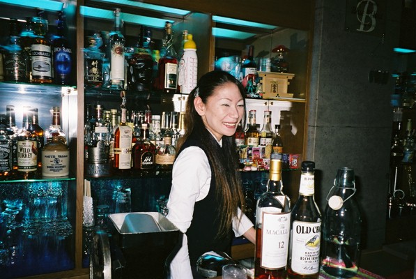 このバーのすてきなミストレス(マスター)は、小島紀子(みちこ)さんで、やっぱりというか、日本バーテンダー協会、国際バーテンダー協会の会員で、佐賀支部の財務部長さんもなさっています。 さすがにとてもお酒に詳しく、また、楽しい会話が楽しめますので、お店の雰囲気を何倍にも盛り上げているようです。